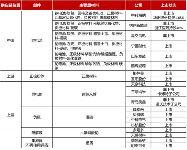 相应的,根据不完全统计,处于钠离子电池产业链上的企业梳理如下: