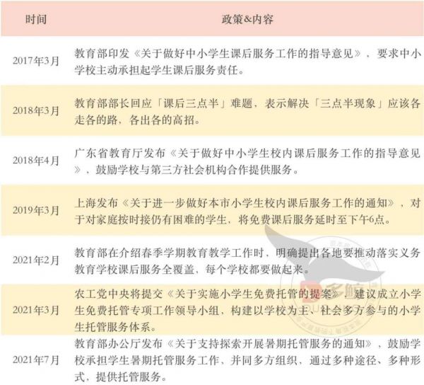 早在 2017 年教育部就针对课后托管服务下发政策,并开始在各地试点。(公开资料整理)