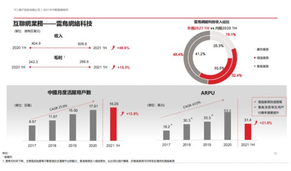 作为TCL的子品牌,雷鸟在大树的庇荫下茁壮成长,根据TCL在2021年夏末公布的数据显示,雷鸟科技2021年上半年发展势头迅猛,收入同比提升49%至6.1亿港元,会员业务和增值业务增长明显。