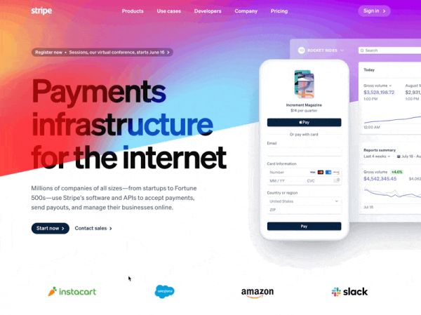 Stripe 的登陆页面不仅极其华丽,而且还考虑得很周到,甚至在主页埋了一个彩蛋。