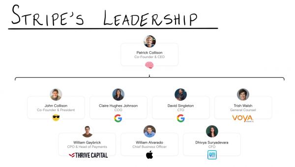 事实证明,这个决定很明智,2014 年,Claire加盟Stripe并担任首席运营官。尽管Collison兄弟在推动技术愿景方面表现出色,但他们并没有管理像Stripe 所发展到的这种规模的公司的经验。幸运的是,Claire有。