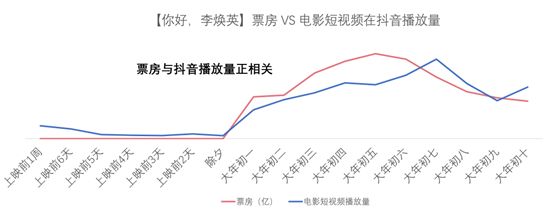 来自巨量引擎的统计数据显示,在《你好,李焕英》上映前,抖音平台官方账号发布了160条视频,抖音达人发布了近1500条视频,普通用户发布了约2万条视频;上映后的十天内,抖音达人发布了4000条视频(为映前一个月的近3倍),普通用户发布了近400万条视频(是映前一月的170倍)。这些视频总共产生了近150亿次播放,点赞数量达到4亿,极大地助力了影片票房的增长,二者走势呈现出极为高度的正相关,短视频成了名副其实的“电影票房放大器”,侧面反映出转化率之高。