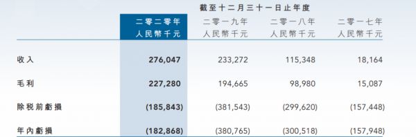 2020年,该公司收入2.76亿元,增长18.34%;亏损1.83亿元,相较去年的3.8亿元亏损有明显收窄。
