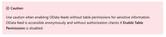 文档页面也进行了优化,在原先隐晦的提醒下加了一个粉色方框警告:“当为敏感信息启用没有表权限的 OData 时,要谨慎使用。”