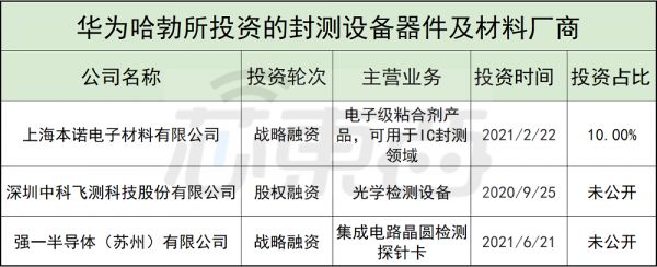 在这一领域,华为也没有直接投资封测厂商,而是将目光转向封测领域的设备、材料供应商。