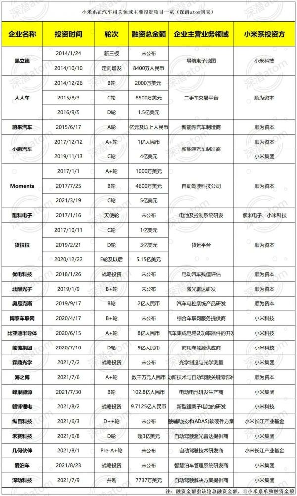 △小米在汽车领域投资明细