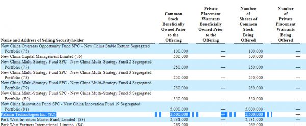 具体来说,Palantir 参加了 FF 之前 SPAC 上市的 PIPE 融资,购买了250万股(每股10美元):