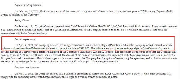 “除了投资之外,Palantir 还和一部分被投对象正在洽谈为期数年的销售合同。例如在某机器人公司的 SPAC 上市当中,Palantir 投资了2100万美元,并且与其签订了长达6年总计金额4200万美元的服务和软件销售合同。”