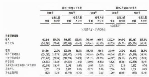毛利率是衡量一个企业能否盈利的关键指标, 2018 年至 2020 年快狗打车毛利分别为 1.04 亿元、1.73 亿元及 1.83 亿元,同期毛利率分别为 23%、31.6% 和 34.6%,毛利率不断提升也让姚劲波有了“忽悠”的资本。在经过2020 年疫情影响,毛利率下滑至25.3%之后,迅速提升到 2021 年前四个月的35.5%,在毛利率方面,快狗打车表现良好,一直维持在三成左右。
