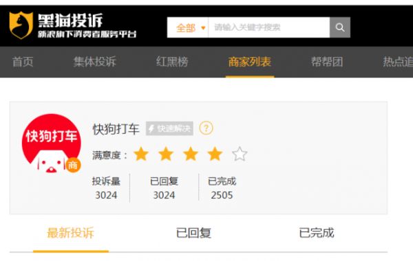 业务没有护城河,服务也没有高人一等,在黑猫投诉中,关于快狗打车的投诉数量高达3024件,低于市场占有率更高的货拉拉的6202件,但远高于满帮的19件。