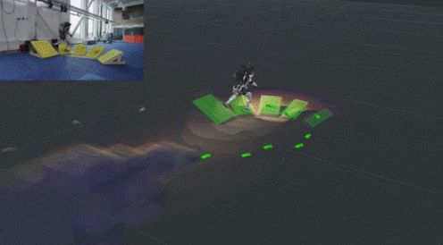 这个盒子可能会与地图的标注相差甚远,甚至往旁边移动了0.5米,但它仍然能靠感知算法,正确找到这个盒子并跳上去。