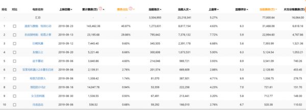 业内某资深数据分析师也认为,今年9月无论是观影人次还是票房总额都和2018年同期相比都有较大差距,甚至会低于去年同期。他认为9月并不会有10亿体量的引进片定档,多数引进片的票房区间在1—5亿。