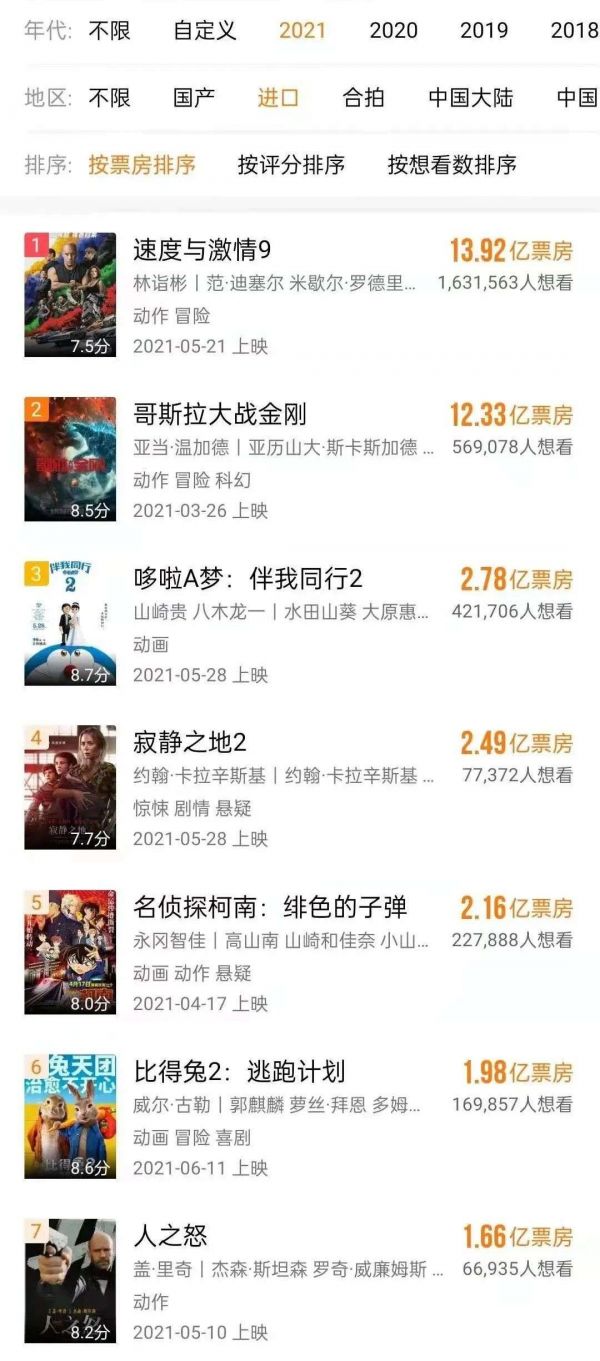 这需要接下来的长久观察。还剩4个月的2021年,引进片究竟能起到多大的救市作用,除了引进影片本身的质量、数量,也与其宣发定档策略,以及各种外部不可抗因素有关。