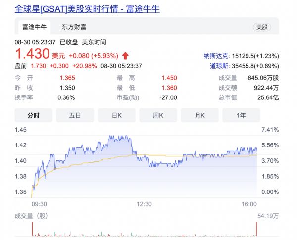 Globalstar成立于2013年11月,总部位于特拉华州,主要为客户提供可定制的卫星商业物联网解决方案,来提升客户的业务效率,高通和美国劳拉公司都为其合作伙伴。消息传出后,今日Globalstar公司的股价上涨了5.93%,如今公司市值达到了25.64亿美元。