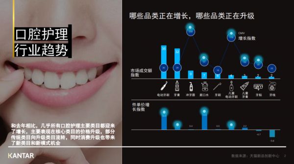 根据《2020年口腔护理行业最新趋势报告》显示,2020年几乎所有口腔护理主要类目都迎来增长,包括核心类目的价格升级与新类目、新模式的机会。