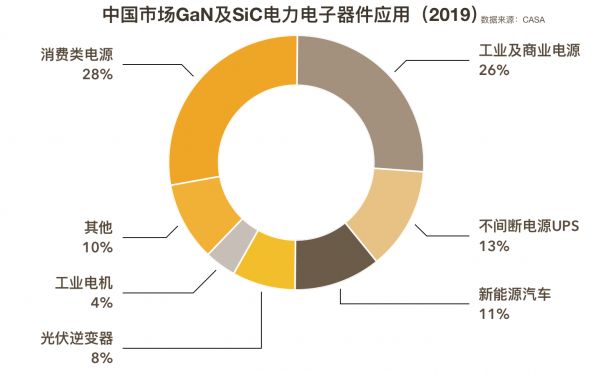 中国市场GaN及SiC电力电子器件应用(2019),数据来源:CASA,36氪制图