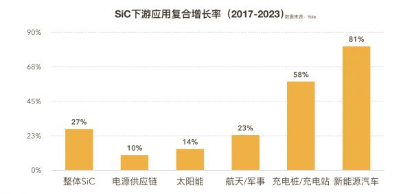SiC下游应用复合增长率(2017-2023),数据来源:Yole,36氪制图