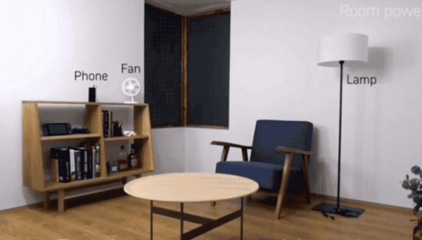 东京大学和密歇根大学的研究人员发明了这样一个无线充电室,可以提供50W的传输功率,成功为屋内的手机、电台灯和小风扇充上了电。
