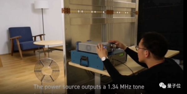 通过房间墙壁上的导电表面和导电极来产生共振磁场,最后再用一个小线圈组成的接收设备就可以给手机等设备充电了。