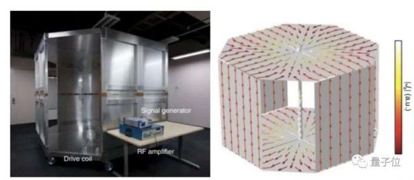 该房间规模为3mx3mx2m,首先在外面配备一个输出频率为1.34MHz的射频电源,然后通过激励线圈(drive coil)将电磁波输送到房间内。