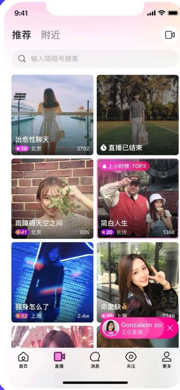 陌陌直播页面,图/陌陌App