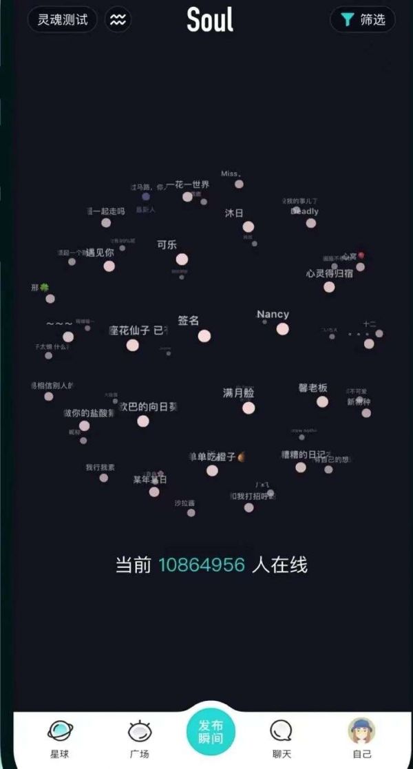 Soul成立于2015年,主打灵魂交友。最大特点是取代真实照片用超萌捏脸作个人标签,系统基于位置、兴趣、爱好进行用户匹配,恋爱铃响代表匹配成功。用户也可设置引力签和声音名片,丰富人物画像。