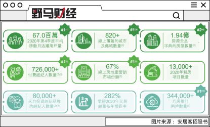 此外,截至2020年底,安居客线上业务已经覆盖820座城市,房源数量达到1.94亿套,付费经纪人数量达到72.6万人,2020年Q4,平均移动月活跃用户量6700万人。贝壳的付费经纪人数量为49.3万人。