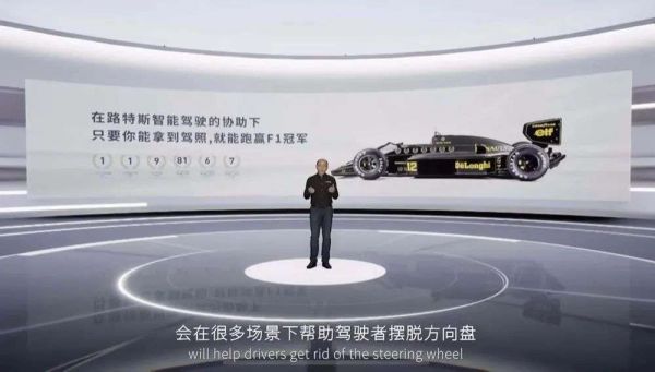 对此,路特斯科技还提出了一个技术目标:未来十年,在路特斯智能驾驶的协助下,只要你能拿到驾照,就能跑赢F1冠军。