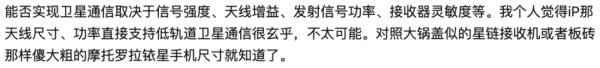 网友@ncc21382则表示,以iPhone现有的天线尺寸和功率,直接支持低轨道卫星通信很难。