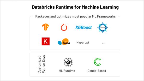 其中的Databricks ML Runtime提供了随时可用的优化机器学习环境,包括最流行的机器学习框架(scikit-learn、TensorFlow等)和Conda支持。