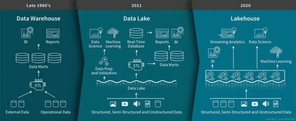 Lakehouse可用于存储、优化、分析和访问许多新数据应用所需的数据类型,包括图像、视频、音频、半结构化数据和文本。