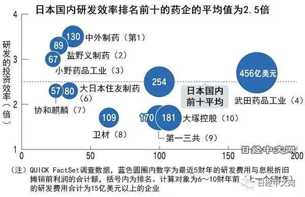 欧美药企研发投资效率高,日本落后