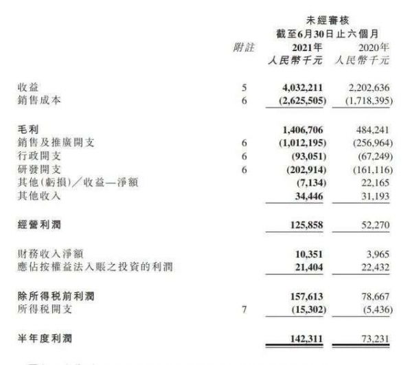 财报显示,截至2021年6月30日,集团实现营业收入为40.3亿元,较2020年同期的22亿元,同比增长83.1%;集团实现净利润为1.4亿元,较2020年同期的7320万元,同比增长94.3%。