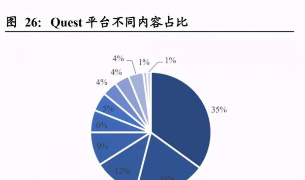 而参考Quest平台截至 2020年11 月的 VR 应用内容占比也能发现,其中动作应用(动作、射击、体育等动作类游戏)占比 35%,是主要的 VR 应用场景。