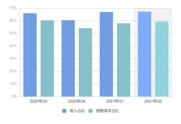 小米收入占比和销售成本占比(来源:元气资本)