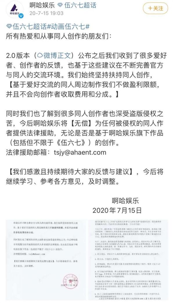 如他所言,同人是基于“喜爱”创作的衍生内容,希望这份承载喜爱的乐土,能在平台、创作者、版权方的沟通之中,飘向主流。