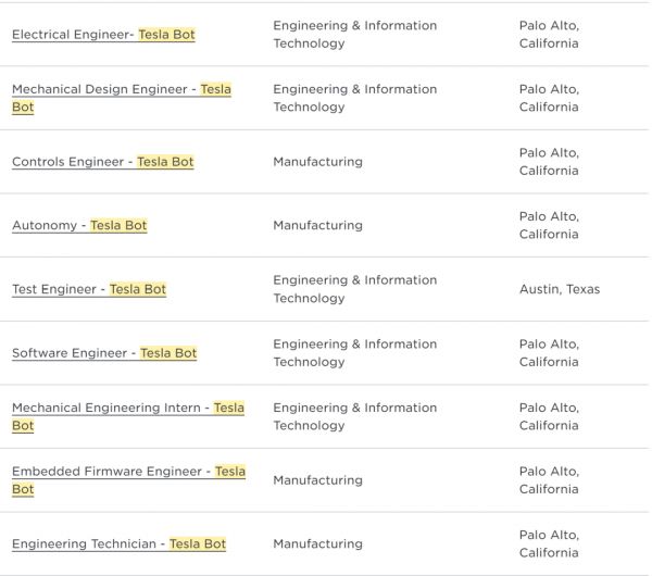 这些新岗位都将服务于Tesla Bot的开发与生产。