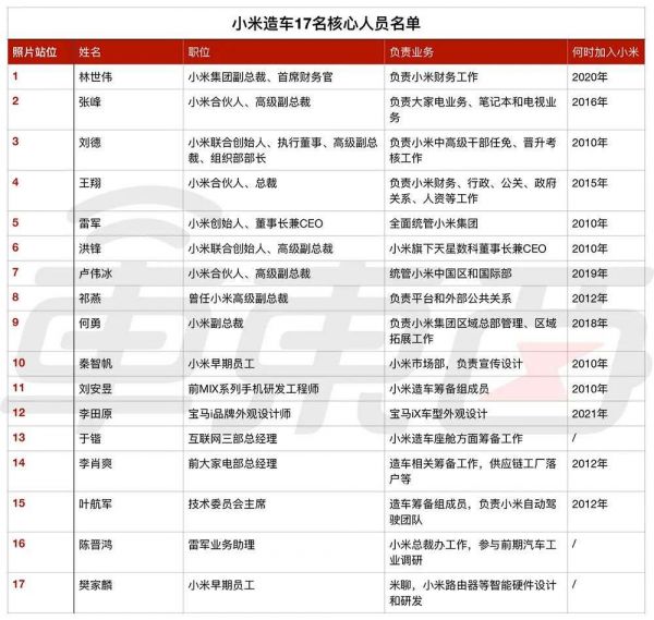 01 小米造车十七罗汉都是什么来头?