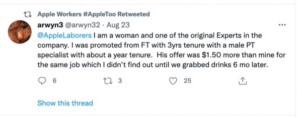 最近,Apple Too开始把这些故事逐渐的放出。本周一,第一批5个故事被披露。这些故事的提供者此前都曾向管理层或苹果的HR部门申诉过,但他们的问题都没有得到回应和解决。