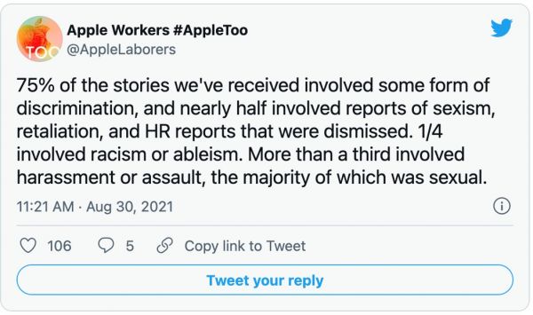 苹果员工举起#Appletoo大旗,硅谷公司职场反骚扰抗争持续升温