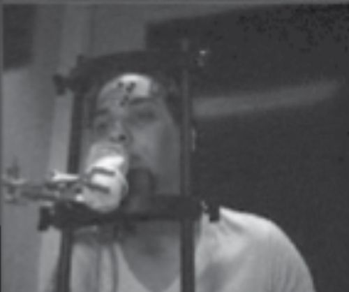 “闻汗水组”的志愿者观看视频的时候,鼻腔会连接“鼻腔气压检测管”,另外,还有一台红外立体摄像机监测他们的眼动。