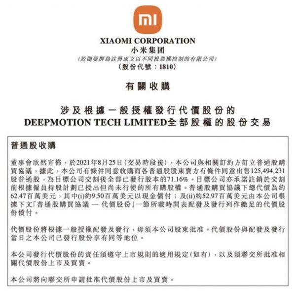 小米作为进军汽车领域的后来者,它实际上并没有太多的时间去布局和研发,所以在某些方面,它还是要像恒大汽车一样“买买买”。在8月25日,小米集团以7737万美元收购了深动科技。
