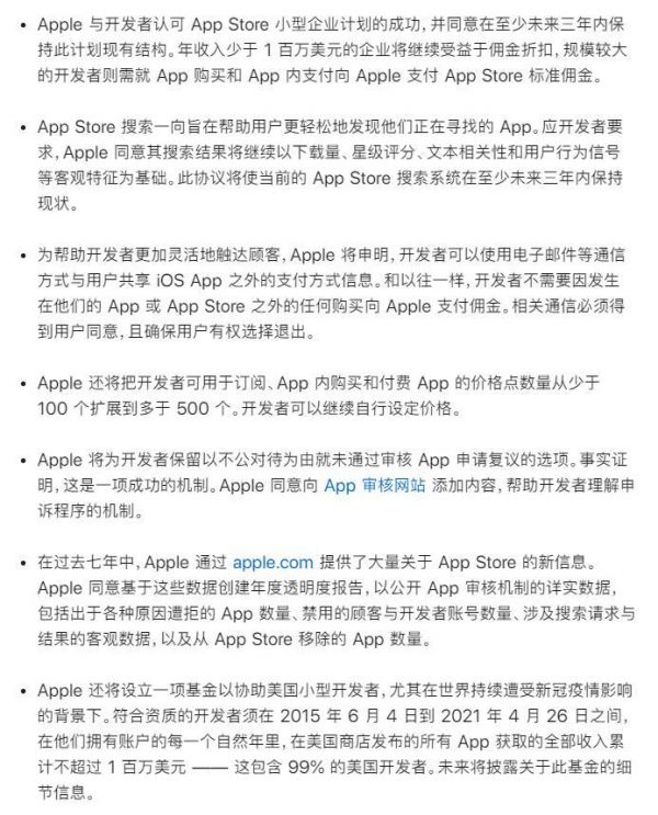 但苹果表示,和解条款有助于使其应用程序商店成为“开发者更好的商机,同时维护用户喜爱的安全和可信赖的市场”。