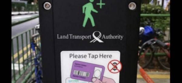 图:新加坡为行人过道的交通灯安装特制阅卡器,让年长者有更充裕的时间过马路(图片来自新加坡新闻)