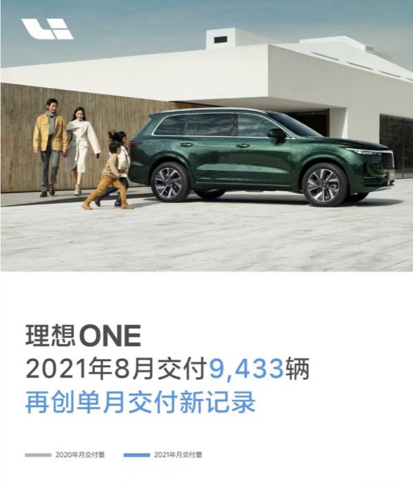 具体来看,今年8月理想汽车交付9433辆理想ONE,同比2020年8月增长248%,环比2021年7月8589辆的交付数据环比增长了9.8%。