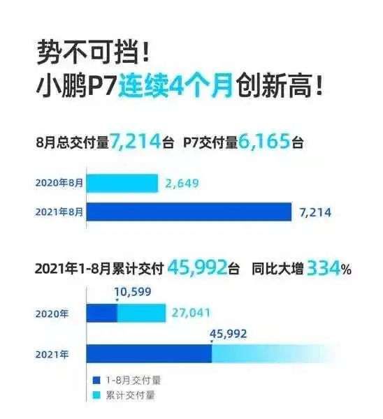 小鹏汽车在8月份实现交付7214辆,虽然同比增长了209%,但是环比今年7月8040辆的交付量环比下滑约10%。