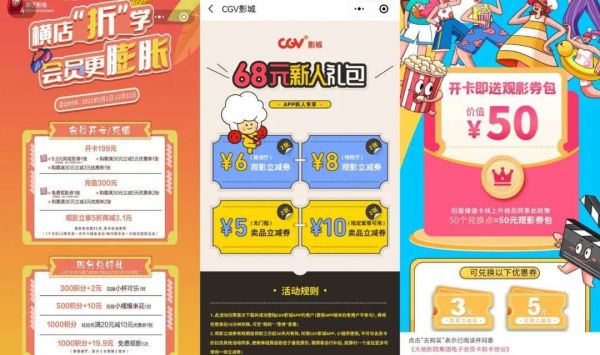 首先,有些影城会为其会员卡系统设计出一套 成长制度, 万达、金逸、CGV、横店等院线推出的会员积分制度正是作用于此。