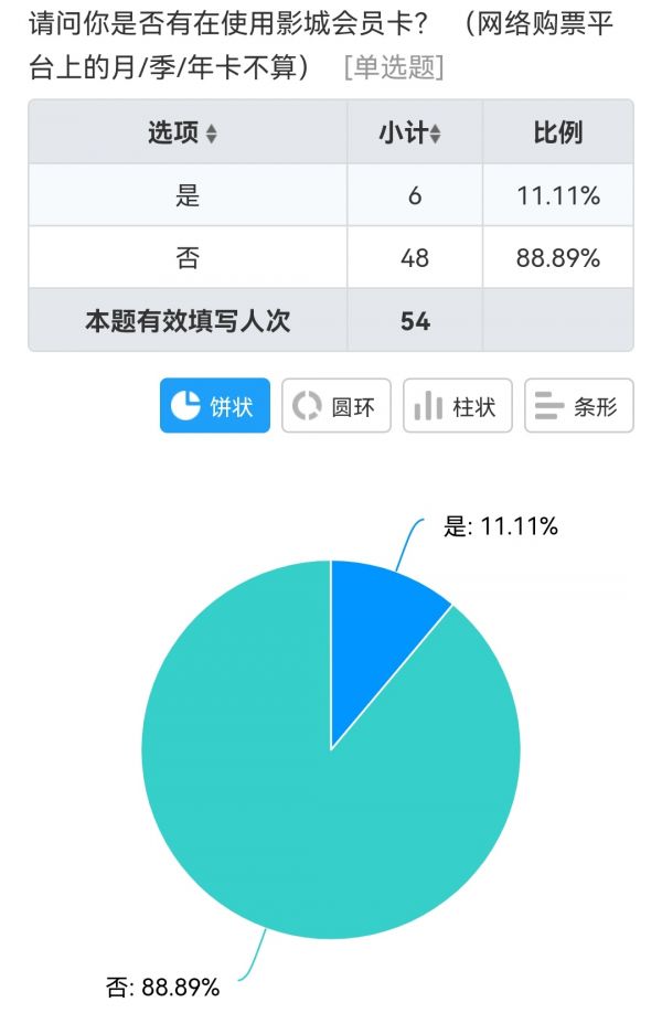 让我们来看一份以“你在使用影城会员卡吗?”为题的调查数据——