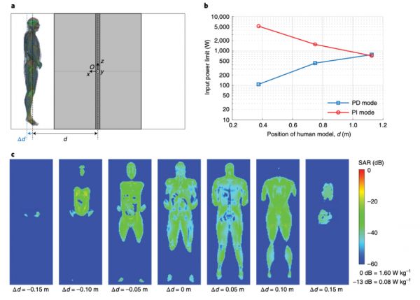 对于后续的安全性分析,研究人员们分析了当系统以 50% 的功率传输效率运行时,SAR 达到监管阈值时的输入功率限制。