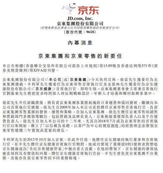 36氪独家|京东零售宣布多位高管新任命,徐雷持续“调整阵型”